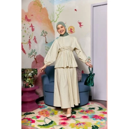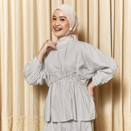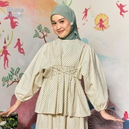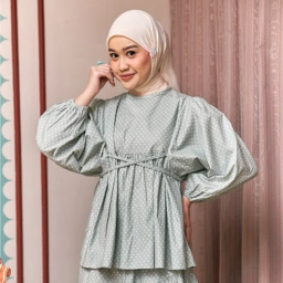 Blouse bahan Cotton Premium. dengan detail lengan balon. Dilengkapi dengan tali di bagian samping dan bukaan belakang.